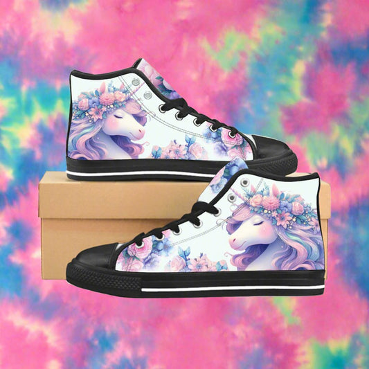 Whimsical Blossom Unicorn Canvas Sneakers- in Soft Mint