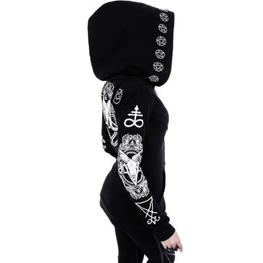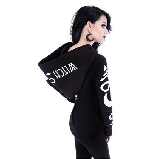 Gothic Occult "Witch Craft" Graphic Print Woman's Long Sleeve Fitted Hoodie w/Oversized Hood