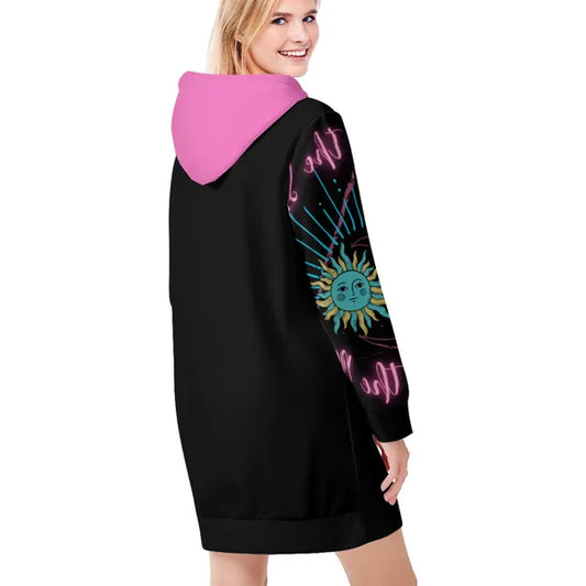 Live by the Sun, Dream by the moon Graphic Sweatshirt Dress-Sizes S-XXL