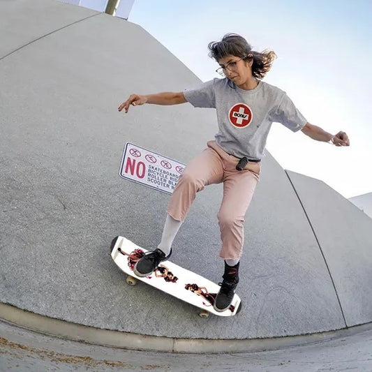 Rockabilly Temptress Skateboard Grip Tape Design on white Grip tape. Fits most size boards.