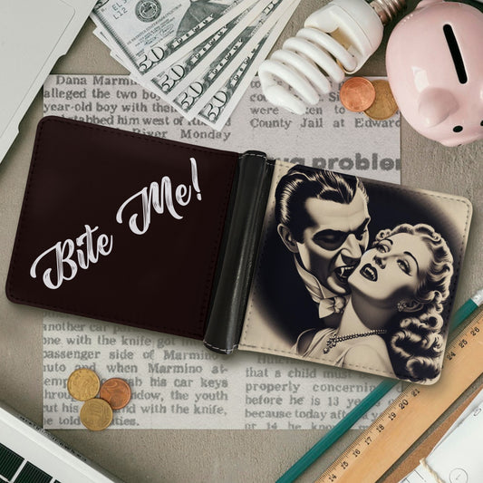 Unique Vintage Style Vampire "Bite Me" Synthetic Leather Wallet w/ 8 card slots