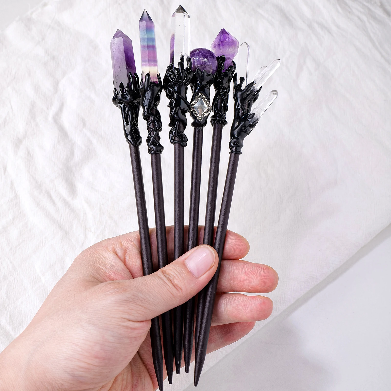 Mystical Crystal Hair Pins - Gothic Witch Accessories-Natural Crystal